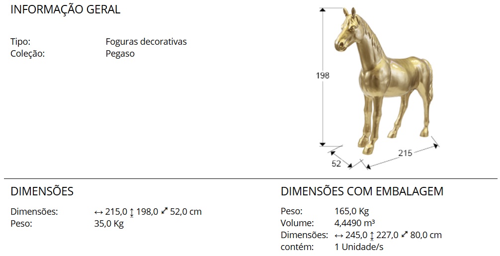 PEGASO-FIGURA CAVALO GRANDE DOURADA