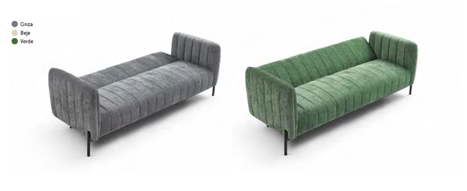 Possui revestimento em tecido, podendo também ser convertido numa cama.